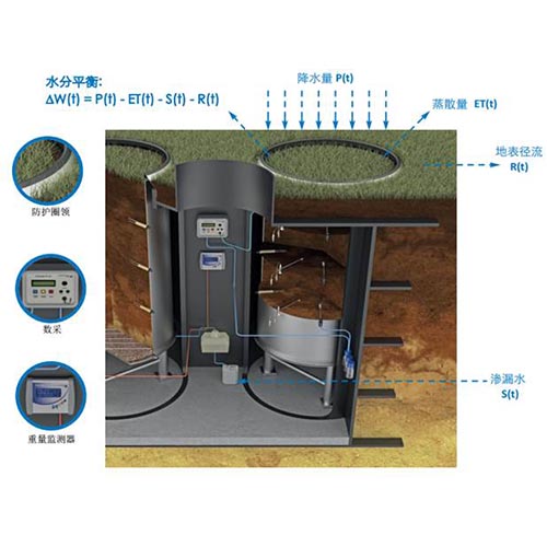 蒸滲儀是農(nóng)林及其他環(huán)境科學中研究水分平衡的重要工具。它的特點是能夠量化測量裸地的實際蒸散量,以及覆蓋有植被的土地的實際蒸散量。此外,蒸滲儀可以采集其土柱中的滲漏水,用以估計水分在土壤剖面中的流失量及其對地下水的補給量。滲漏水可以在實驗室中進行溶質(zhì)成分分析,因而可以用蒸滲儀監(jiān)測土壤中不同溶質(zhì)的運移情況。稱重式蒸滲儀可以連續(xù)監(jiān)測土柱重量,從而得到任意時間段內(nèi)土柱中含水量變化的詳細信息。結(jié)合降雨量及相關(guān)測量數(shù)據(jù)可確定蒸散量。因此,蒸滲儀可用于模擬土壤-大氣-植物之間的自然關(guān)系,并且能夠反應(yīng)出實驗室研究和田間實驗之間的關(guān)系。