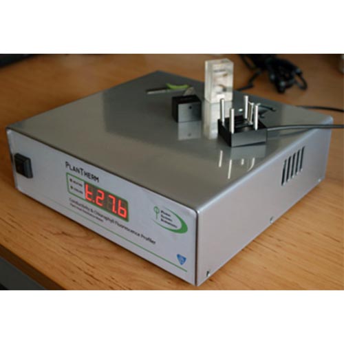 原理:將植物樣品浸泡到水浴中,然后加熱使溫度線性的從25℃升高到75℃(大約需要30分鐘),同時(shí)持續(xù)監(jiān)測和評估水浴中電導(dǎo)的變化。通過獲得的電導(dǎo)/溫度曲線能夠F反應(yīng)細(xì)胞中離子滲出的準(zhǔn)確臨界溫度。這個(gè)臨界溫度可以衡量植物樣品的熱穩(wěn)定性。在加熱的過程中,儀器還會監(jiān)測植物的葉綠素?zé)晒鈴?qiáng)度,用于評估主要光合過程和光系統(tǒng)的熱穩(wěn)定性。