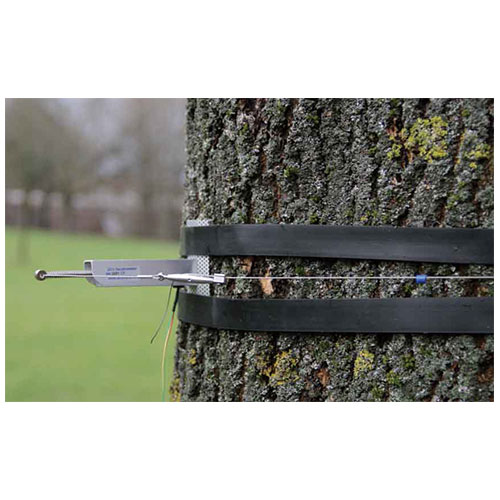 DC3和DC4是DC1改進(jìn)版本。鋼絲繩的拉力改為徑向設(shè)置。這樣鋼絲繩對樹的壓力和樹徑無關(guān),不同樹徑的測量結(jié)果可直接比較。傳感器通過一個由熱膨脹系數(shù)低的合金制成的鋼絲繩固定在樹上。用小塑料環(huán)減少鋼絲繩對樹的壓力,并減少摩擦阻力,大大提高靈敏度。